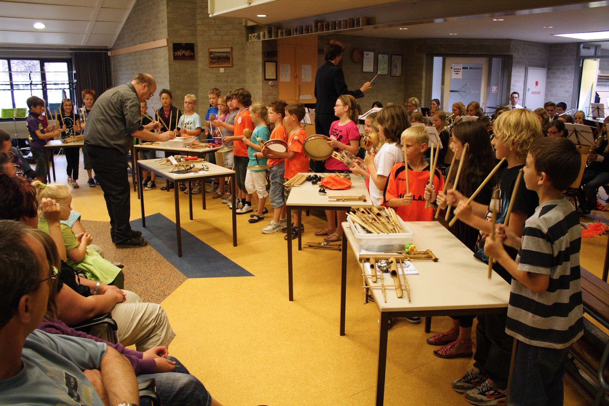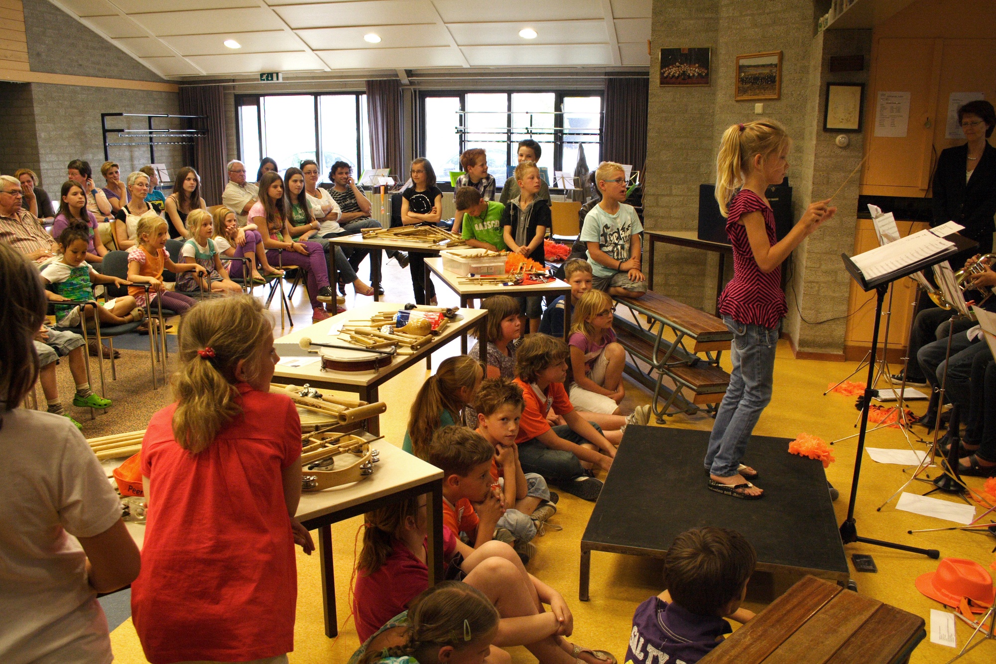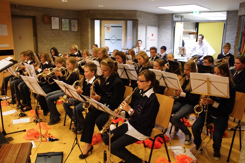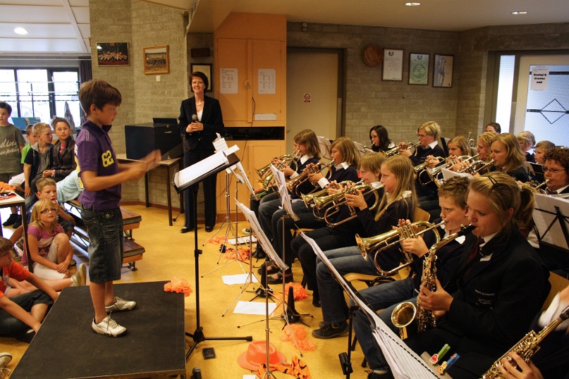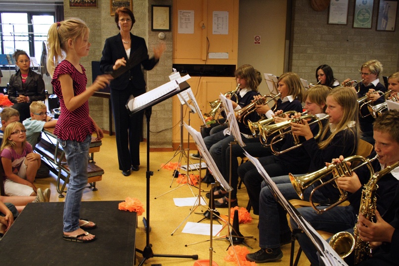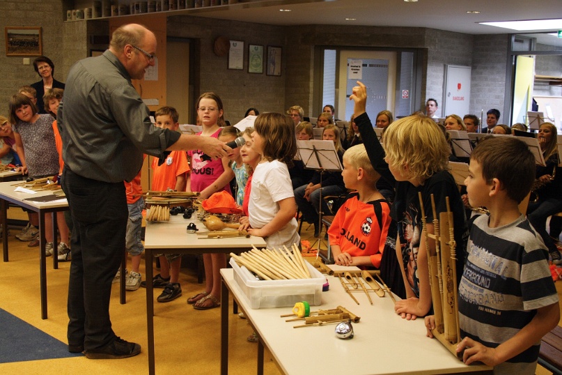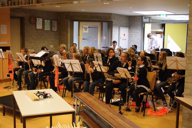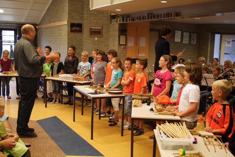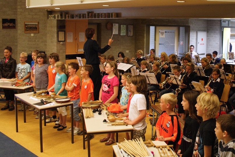 Groep 5 treedt op met studieorkest Fanfare Helpt Elkander. Foto's: Mat Wijers