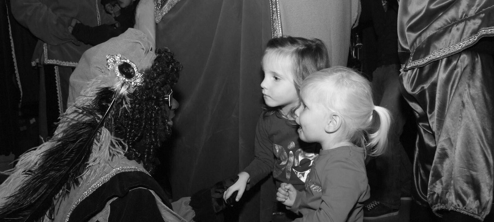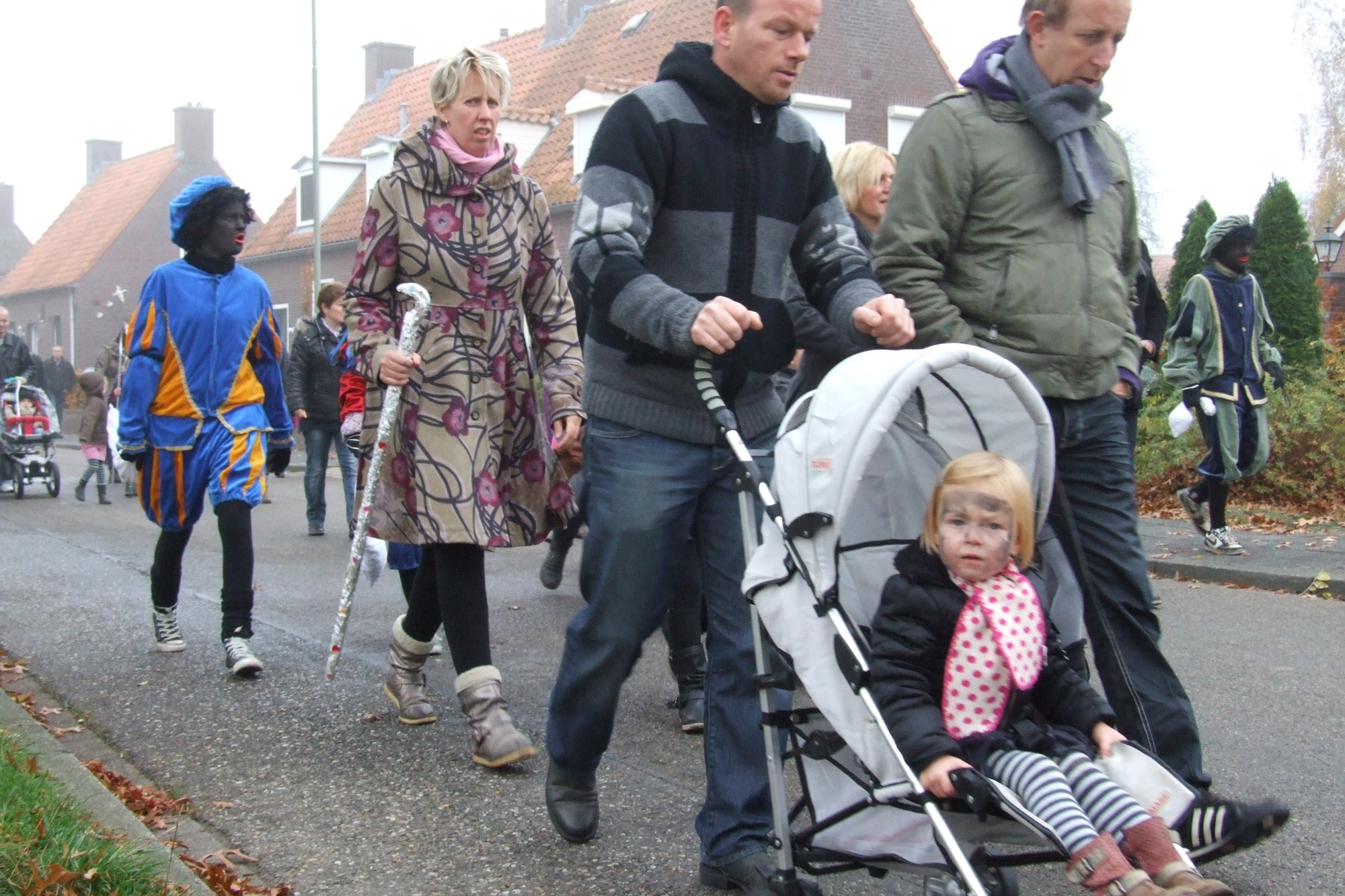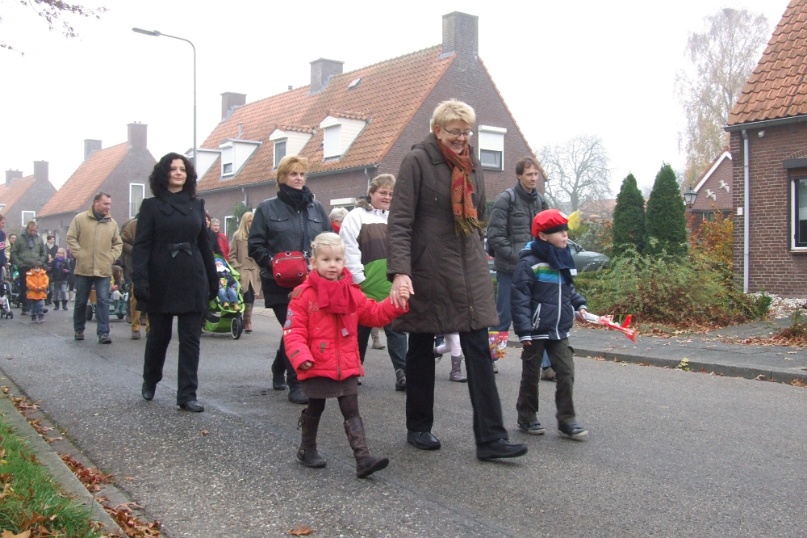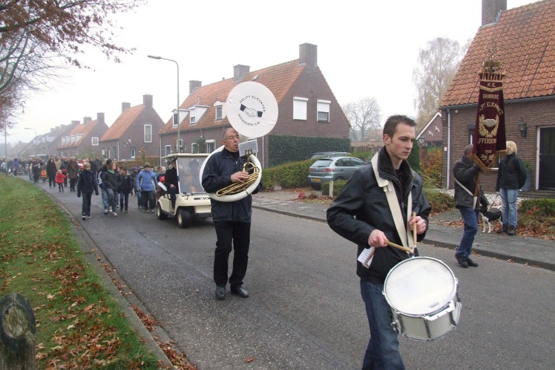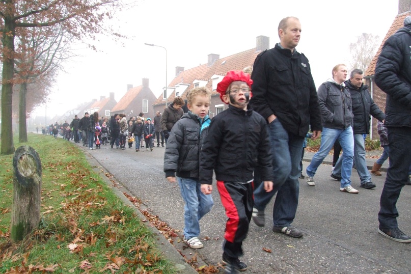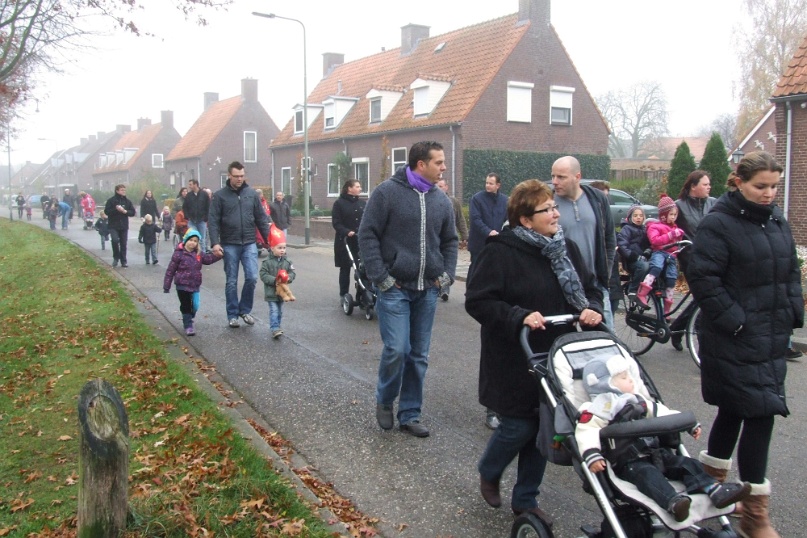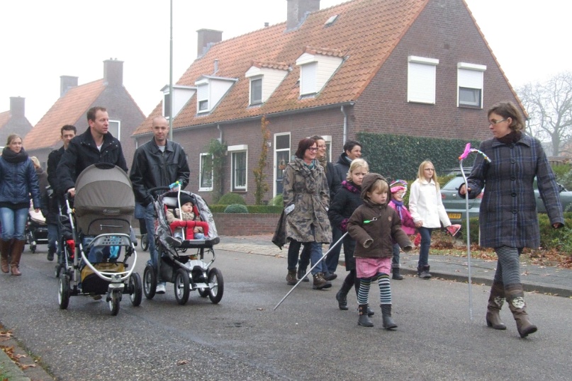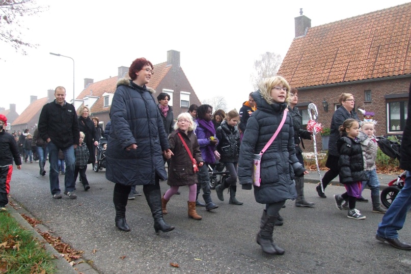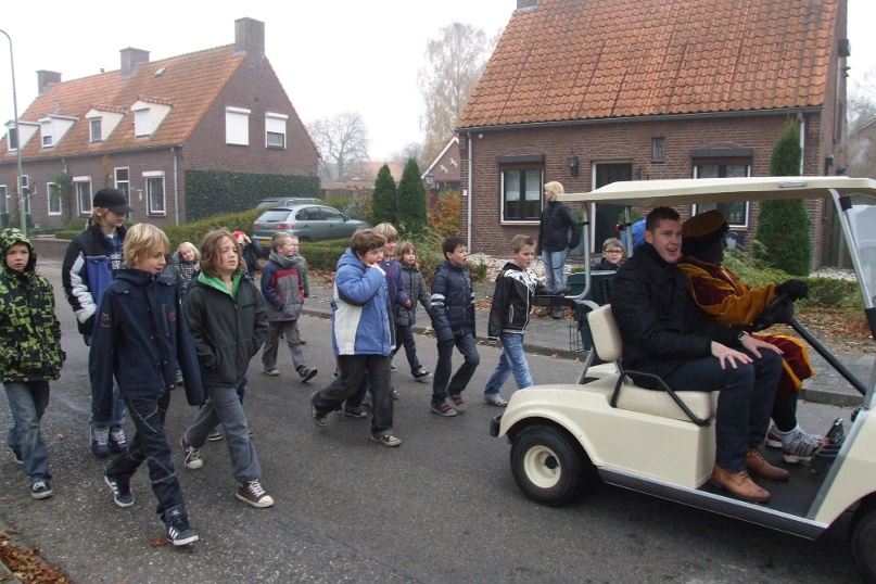 Omdat het erg mistig was aan de Maas kwam de Sint niet traditioneel met de boot maar met de veerpont naar Afferden. Vervolgens ging de stoet richting Iedershuus. Daar probeerde 'Bling Bling Piet' de staf van Sinterklaas te stelen omdat ze deze zo mooi vond. In het Sinterklaasjournaal hadden we al vernomen dat ze dit van plan was. Vandaar dat aan alle kinderen van Afferden gevraagd was om een mooie zelfgemaakte staf te maken voor 'Bling Bling Piet'. De kinderen van Afferden hadden hier massaal gehoor aan gegeven. 'Bling Bling Piet' kreeg vervolgens van al deze kinderen zoveel mooie sinterklaasstaffen, dat zij de echte niet meer wilde hebben. Foto's: Hans v/d Woldenberg