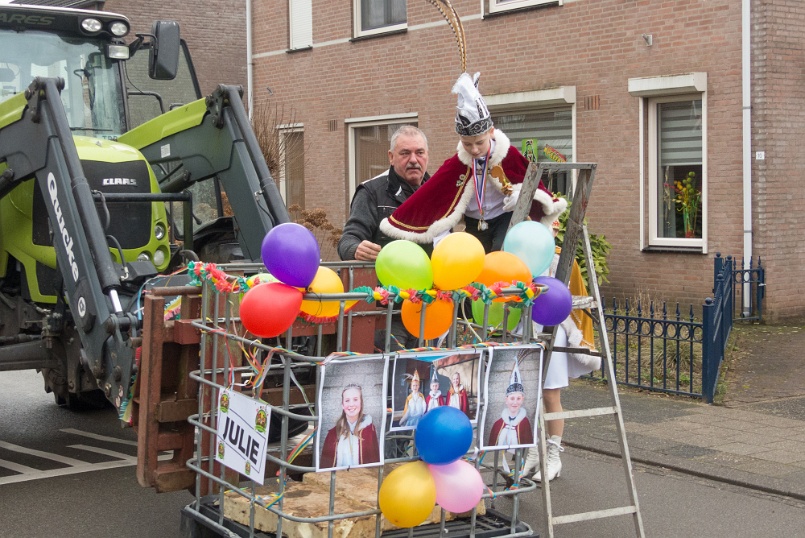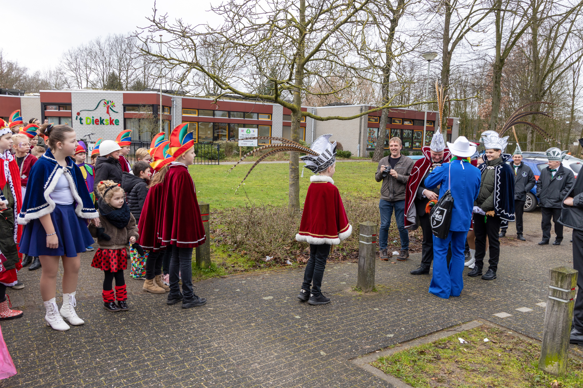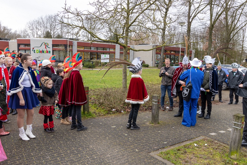 Voorafgaand aan de schoolpronkzitting in zaal de Pruuver wordt in optocht schoolprinses Julie opgehaald door schoolprins Lars, de vorst, alle kinderen van 't Diekske. Verder lopen o.a. de jeugdprins- en prinses van de Sneuzels, de prins van de Peijas en het prinsenpaar van de Pikkuls nog mee.