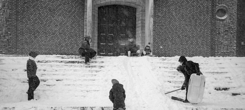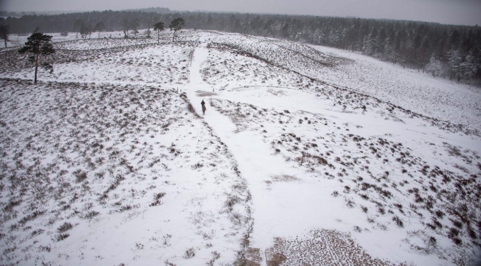 Na een nachtje sneeuwval met harde wind lag er in de loop van zondagmiddag toch een flink pak sneeuw. Hier en daar was dat meer of minder omdat door de harde wind de sneeuw alle kanten opstoof en hier en daar flinke sneeuwduinen ontstonden.